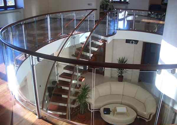 - Kính cường lực kết hợp tay vịn inox mang vẻ hiện đại.