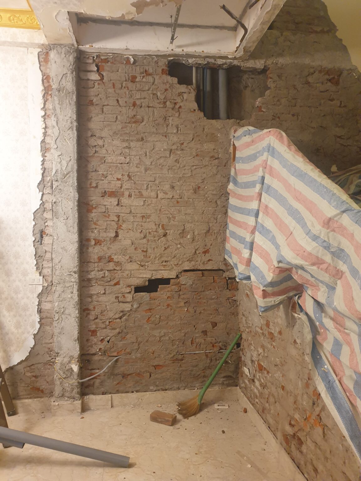 - Tháo dỡ lớp gạch cũ để lộ phần nền.