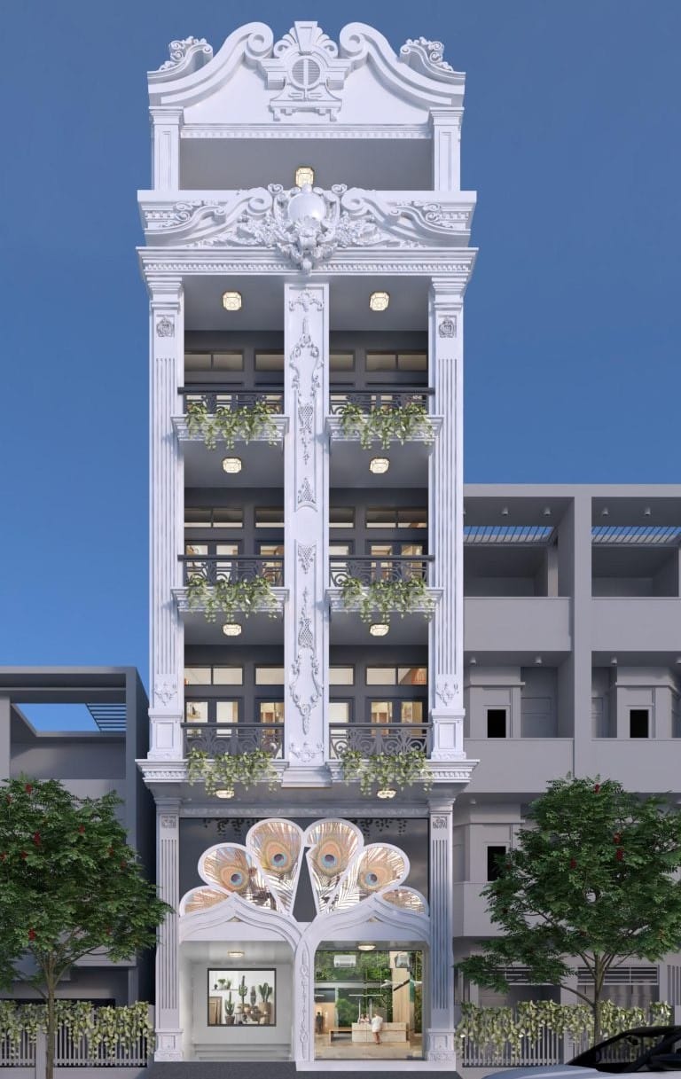 Ngoại thất nổi bật sau 0913.285.273 cải tạo nhà 4 tầng cũ Hà Nội