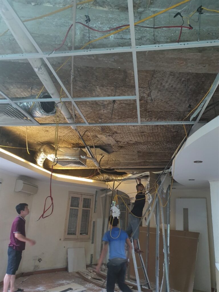 Xây tường, ngăn phòng, làm mái tôn, trần thạch cao, ốp lát sàn.
